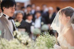 新婦は、受け取った花束から1本抜き取り、新郎の胸ポケットへさすことで「YES」の返事をします